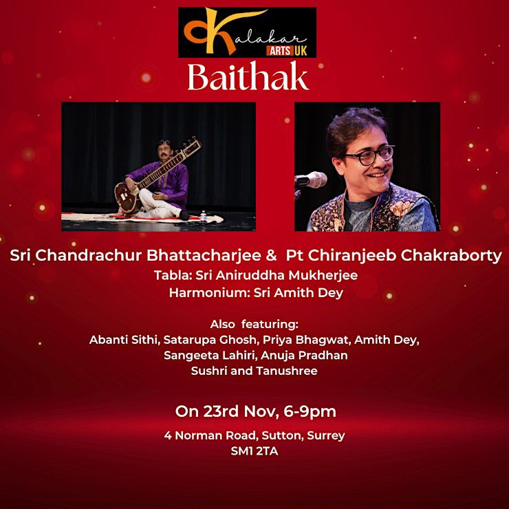 Baithak Baithak on November 23, 2024 6-9 PM + Add to Google Calendar + iCal / Outlook export Date Nov 23 2024 Expired! Time 6:00 pm - 9:00 pm Location Sutton Share this event